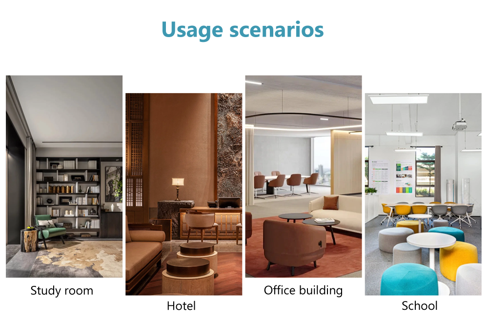 سيناريوهات التطبيق | الدراسة ، الفندق ، مبنى المكاتب ، المدرسة |