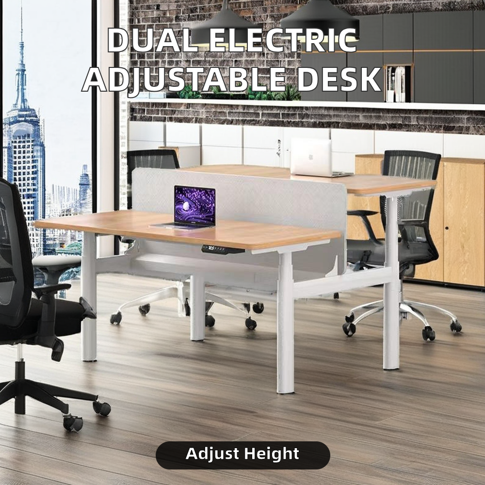 لأعلى ولأسفل المكتب 4 مركبة ، قم بتعديل محطة العمل الكهربائية ثلاثية الأجزاء ثنائية الحوض ، مكتب قابل للتعديل مزدوج الجمل
