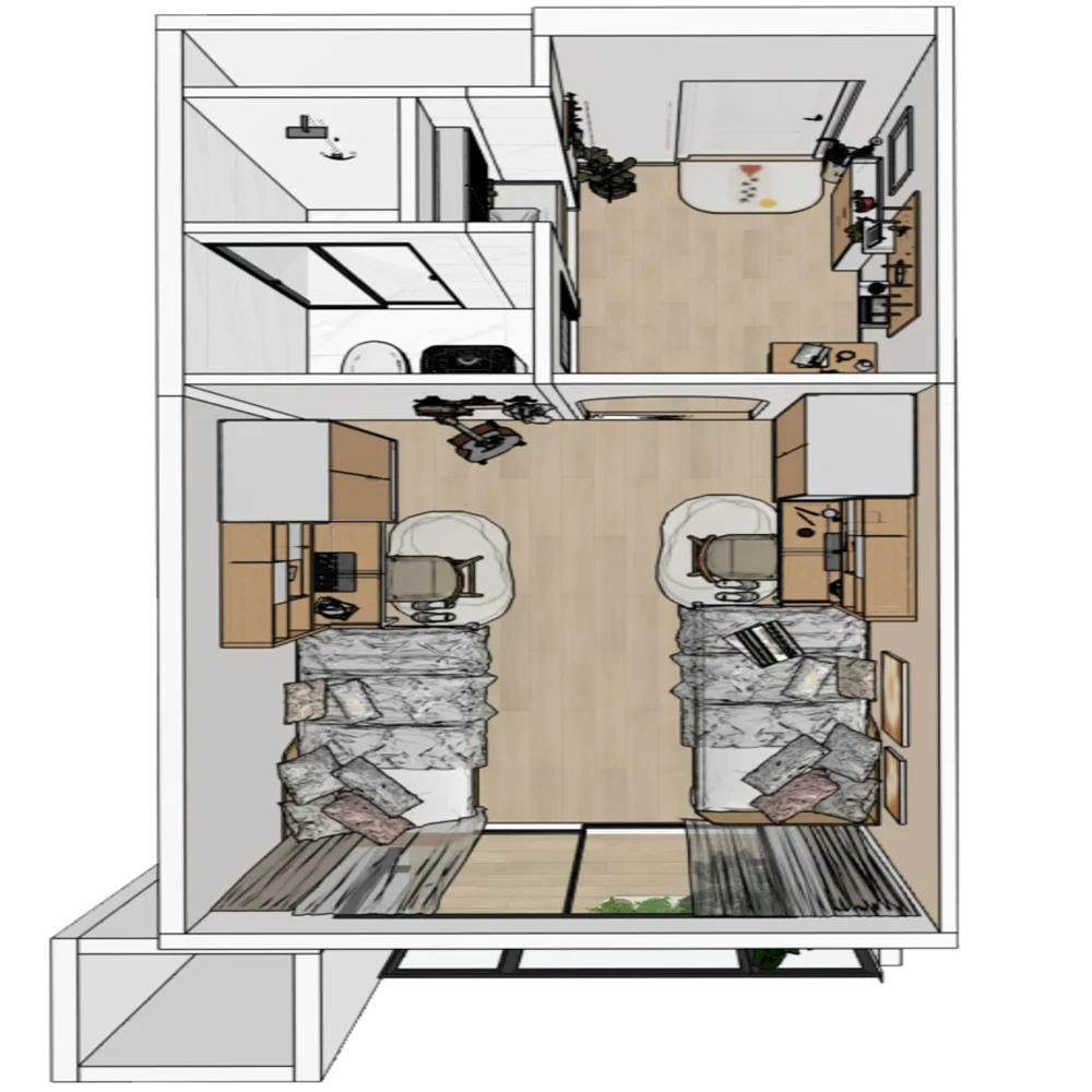 | تعيين | مجموعات مخصصة: 2 مكتب / 2 سرير / 2 خزانة / طاولة الشاي / 2 مربع البراز / خزانة الحمام / خزانة الأحذية / رف تخزين الجدار |