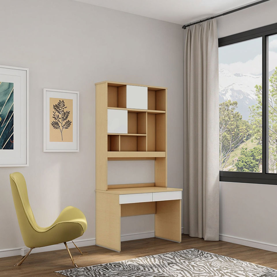 اسم المنتج | مكتب دراسة الخشب الحديث الحد الأدنى مع رف الكتب |