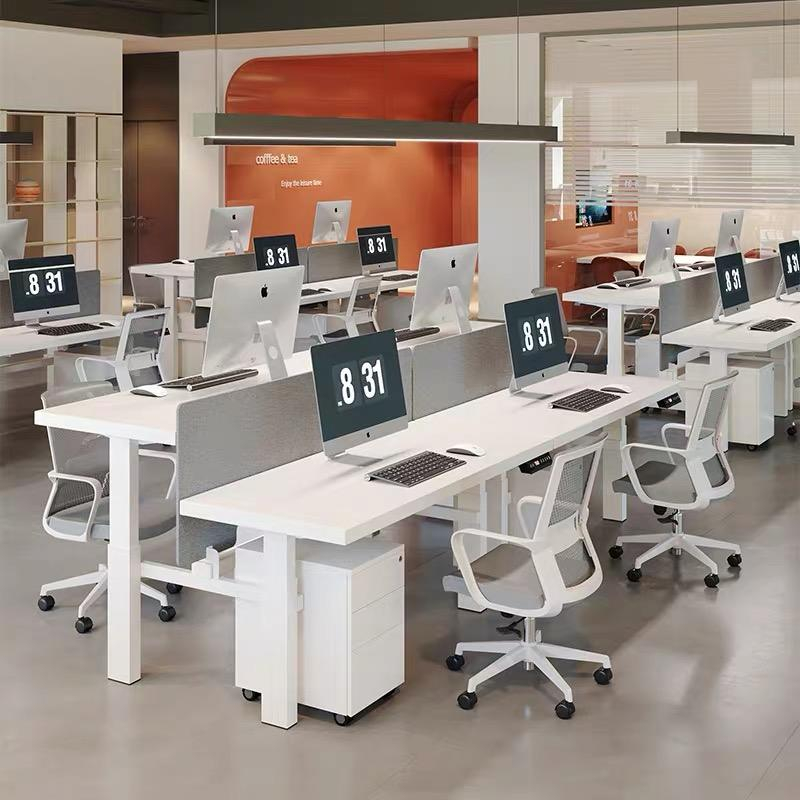 بيت » منتجات » رفع طاولة المكتب » مكتب لأعلى ولأسفل المكتب المكتب المكتب الكهربائي ذو 4 مركبة ، طاولة مكتب ثنائية المقعد ثنائية القسم