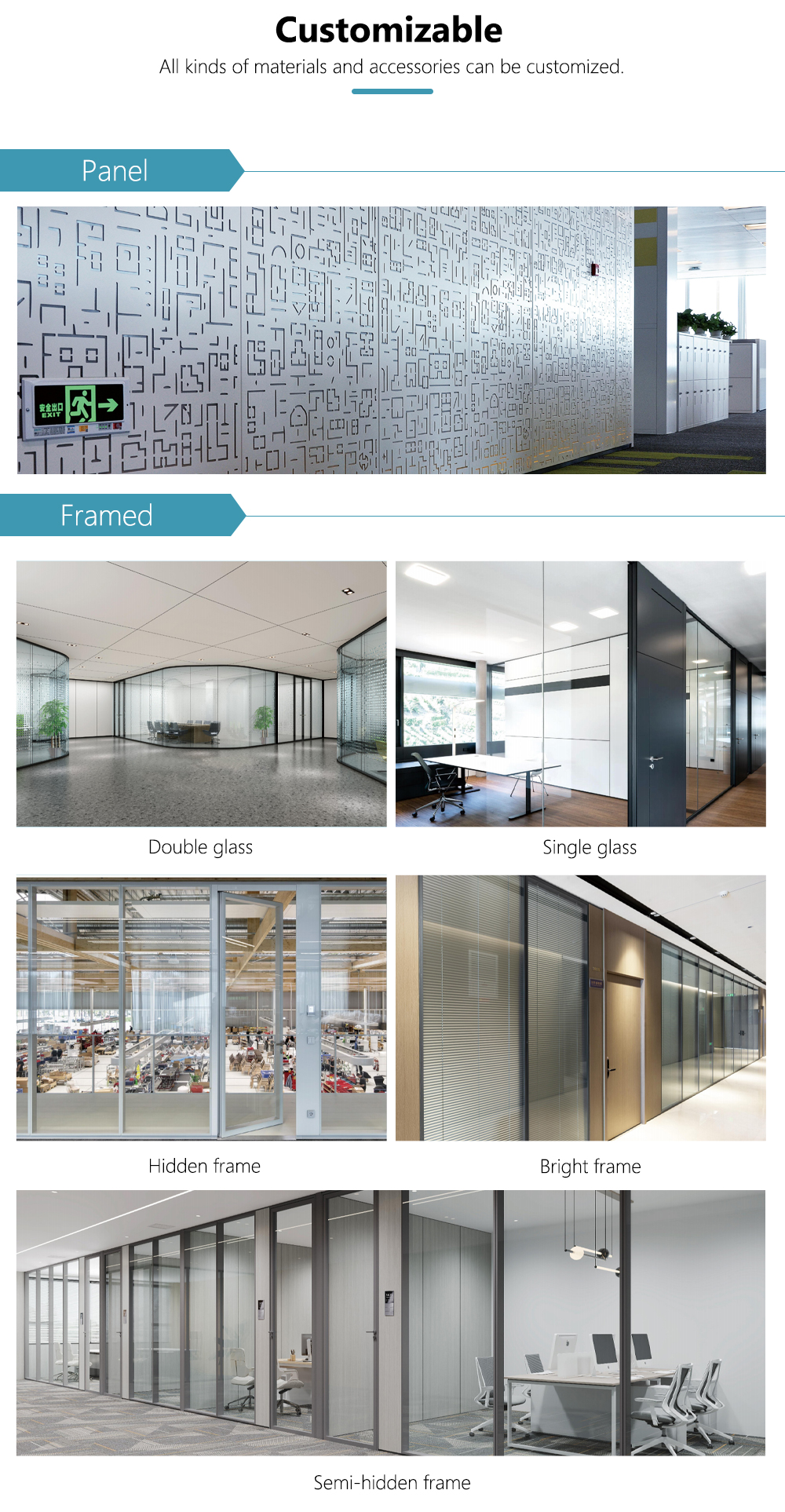 بيت » منتجات » قسم المكتب » قسم الزجاج المكتبي » Office Office Glass Wall Partition System Eco Friendly Design Quick Assembly Framed Plassid